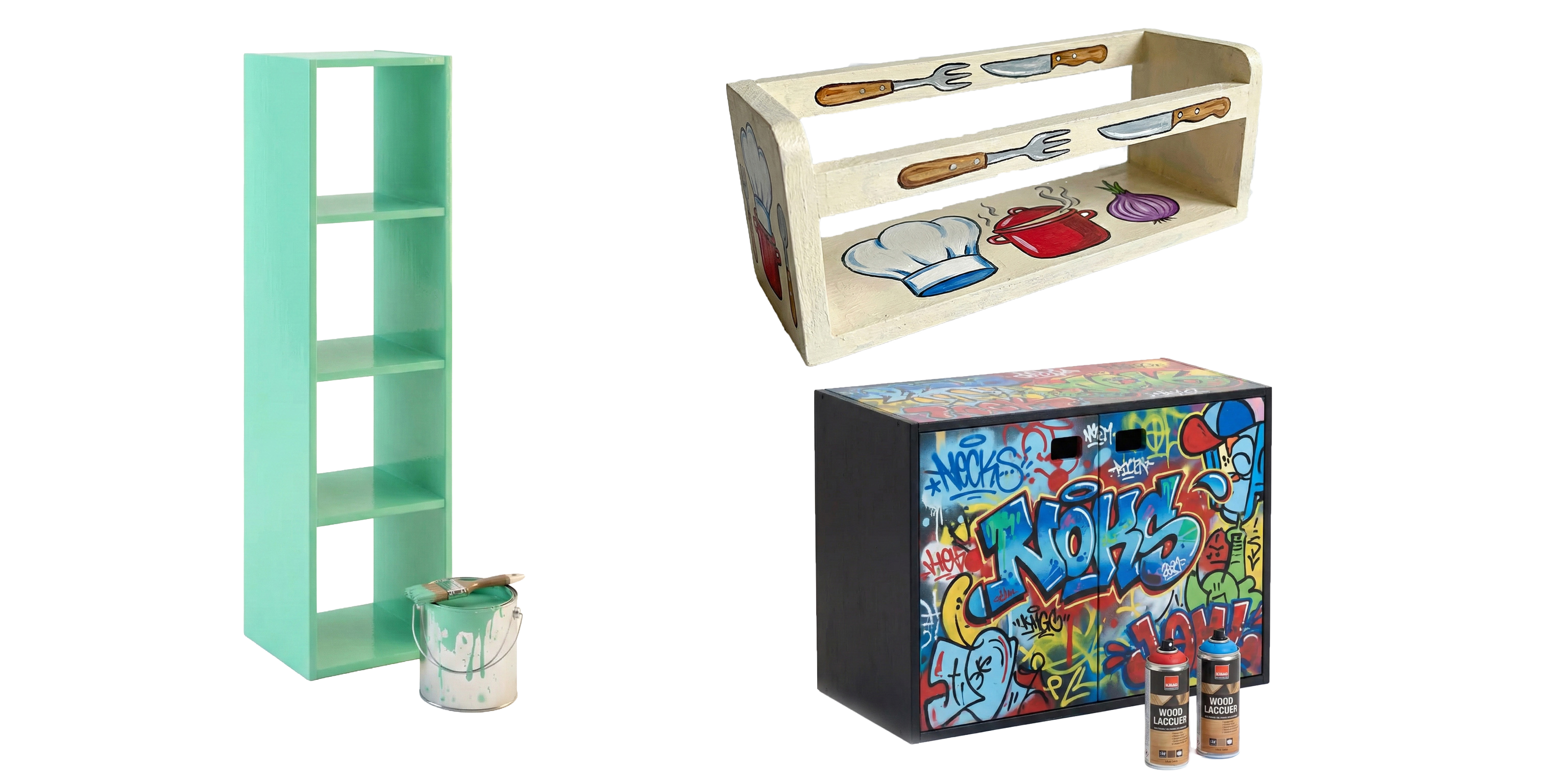 Die Artikel lassen sich aufgrund ihrer unbehandelten Oberfläche auch leicht weiterverarbeiten und durch Farbe und Lacke individuell gestalten und kreativ bearbeiten. Kreative Beispiele für lackierte oder bemalte Möbelstücke finden Sie hier:
